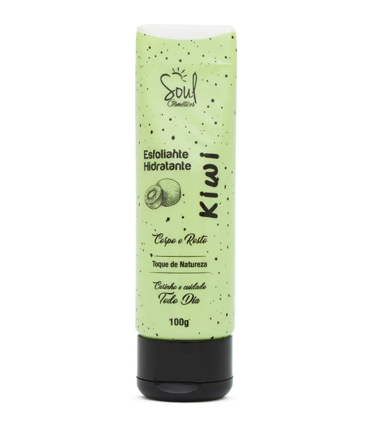 O Hidratante Esfoliante para Corpo e Rosto de Kiwi da Soul Cosméticos foi formulado para proporcionar uma limpeza renovadora enquanto hidrata e revitaliza a pele. Com ação esfoliante suave e ingredientes nutritivos, ele remove as células mortas e impurezas, estimulando a renovação celular e deixando a pele mais macia, uniforme e com aspecto saudável.